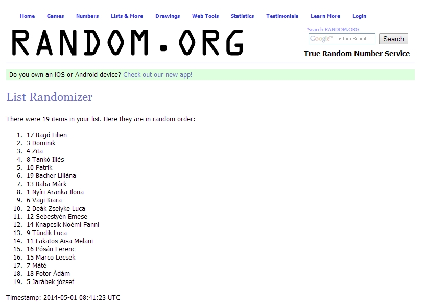 2014 április hónap kisbabája – sorsolás random.org