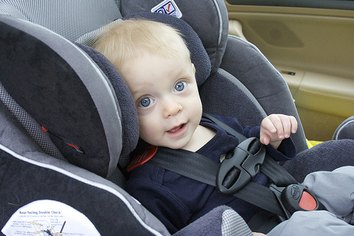 Ellenőrizd a gyermekülést: minden gyermek háttal kell legyen, amíg el nem éri az 1 éves kort és legalább 9 kg-os testsúlyt. De a gyerekek 30%-át hamarabb fordítják meg. Sokan összetévesztik az és-t a vagy-gyal. De a babáknak mindkét kritériumot teljesíteni kell – súly és életkor – azért, hogy arccal előre lehessenek. Más szavakkal, egy babát sem szabad megfordítani arccal előre, amíg 1 éves nem lesz. Ha gyermeked könnyebb mint 9 kilogramm, mikor betölti az 1 éves kort, tedd továbbra is háttal, amíg eléri a kívánt súlyt.